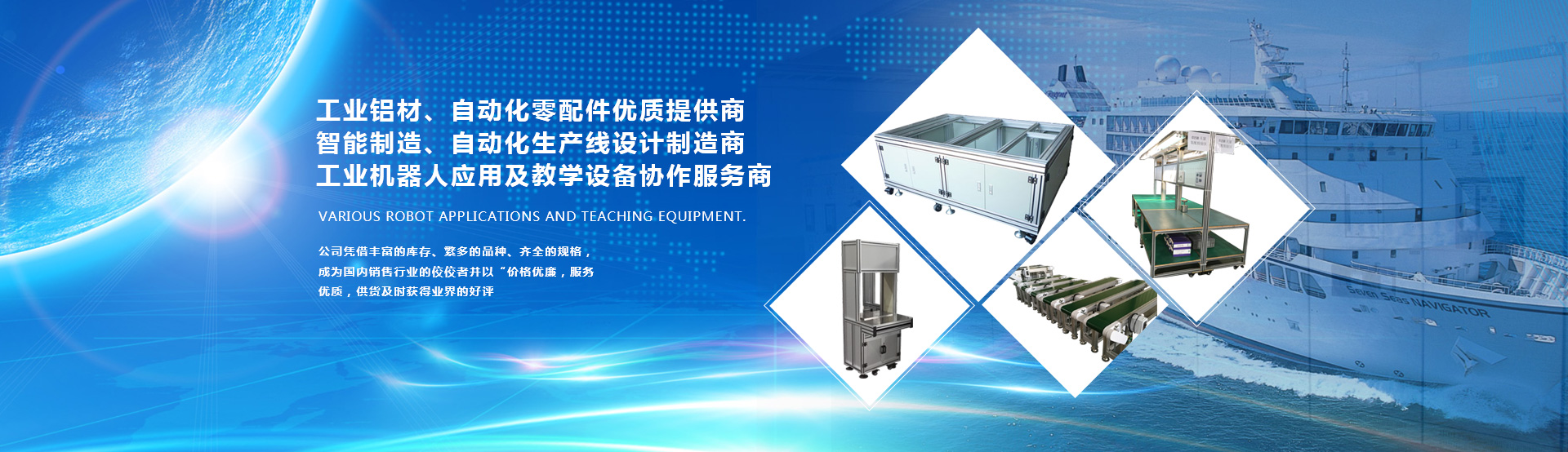 各種機器人應用及教學設備。為工業生產及工業自動化提供一站式配套服務,我們的產品有:1、國標,歐標全系列工業鋁型材,